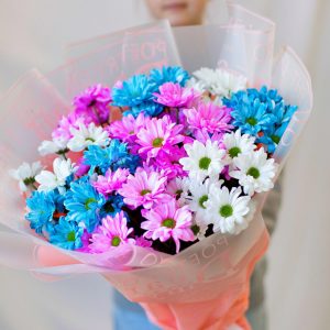 Букет малиновый хит для молодой девушки из кустовой хризантемы с хлопком